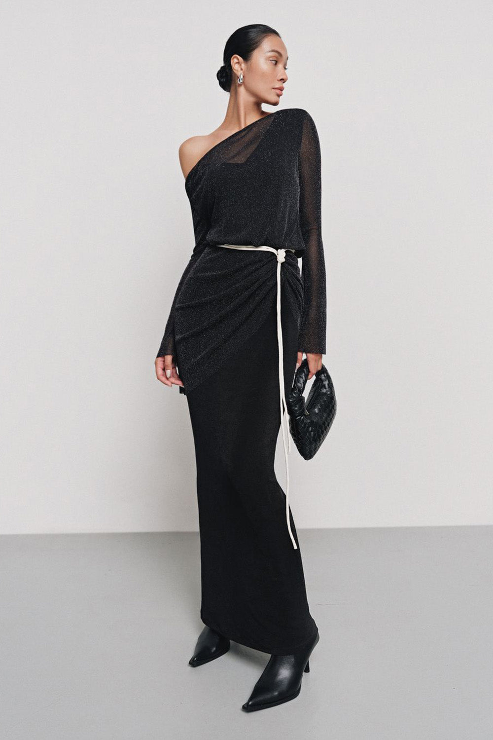 Robe longue fourreau asymétrique en spandex Dinh Tran