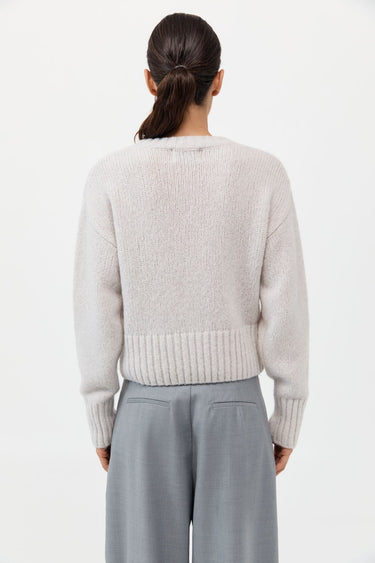 Le pull en mélange de laine et de cachemire présente un tricot doux en mélange de cachemire, une silhouette à col ras du cou, un ourlet côtelé et des manches longues. Conçu pour la chaleur saisonnière, le pull en mélange de laine et de cachemire est un incontournable par temps frais. DÉTAILS Matériaux 57 % laine mérinos RWS / 25 % cachemire / 18 % nylon recyclé Détails du vêtement Tricot doux, col ras du cou, ourlet côtelé, manches longues, coupe décontractée. Fabrication Le fabricant a signé le code de conduite de St. Agni Audit social BSCI Fabriqué de manière responsable en Chine ENTRETIEN DES TAILLES Laver et sécher le vêtement à l'envers Laver à la main à froid séparément dans un détergent doux Ne pas faire tremper Ne pas blanchir Ne pas tordre ni essorer Ne pas sécher au sèche-linge Sécher à plat à l'ombre Repassage à froid sur l'envers Ne pas suspendre, ranger à plat